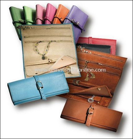 Description: Materials: Leather Compact jewelry roll fits easily into travel bags or hotel safe Leather strip with snap closure keeps rings secure 10-set earring holder 3 zippered storage compartments Includes gif... -