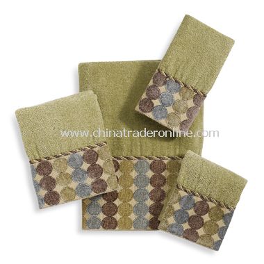 Description: This towel collection will be a chic addition to your bathroom. Stylishly embellished with a design of modern circles and accented with a matching cord, these towels will update your bathroom decor. 1... -