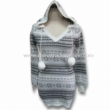 Womens Sweater with Hood, Made of 100% Acrylic