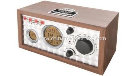 Description: Beacon FM Radio Alarm Clock. Classic wooden FM radio alarm clock, with a display for clock, and has calendar function with LCD display for C/F temperature, both with red backlight. Price includes a 1 ... -