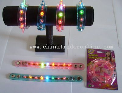 Description: Features: 1)Made of 100% silicon 2)High quality3)Different colors & sizes available4)Can be with different logo,printing/debossed/embossed logo are all available5)Weight:approx.5.5g6)Standard size...Blinking spiked led flashing bracelet with colorful lights