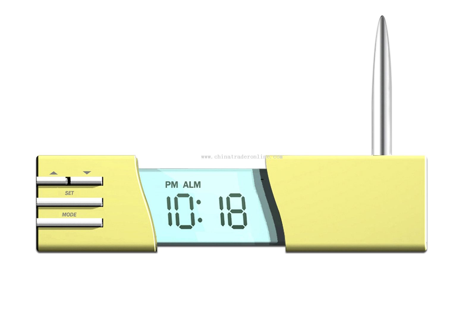 Description: 1.Play the voice recorded beforehand on time2.Display time, date, week, 12/24 hr mode shiftable3.Alarm and snooze4.Display world time and local time at one time5.Countdown timer with the ring remindin...Pen-holder timer