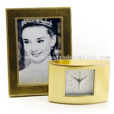 Description: SIZE/CM: 8x5.7x8.7 QTY/CTN/PCS: 40 MEAS/CTN/CM: 46.6X22.5X35.6CM G.W.: 18.5 (KGS) N.W.: 91g+289g (KGS) INDIVIDUAL PACKAGING: WHITE / GIFT / DISPLAY / WINDOW BOX DESCRIPTION: Leather mirror and...Leather Clock and Photo Frame Sets