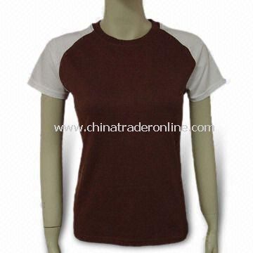 Description: Materials: cotton/polyester Different sizes are available Customized colors, logo printings and sizes are accepted OEM orders are welcome...Promotional Womens T-shirt, Made of 50% Cotton and 50% Viscose Knit Jersey, Sits on Hip