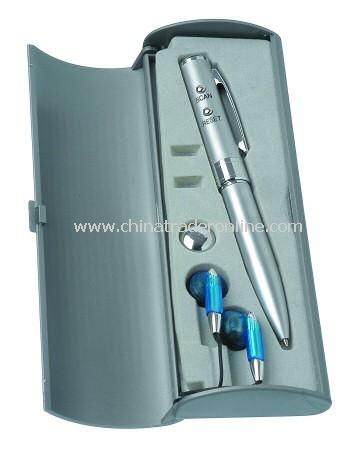 Description: Supplied in gift box with batteries and earphones. Size: 145 x 13mm diameter Colours: silver Print size: 50 x 10mm...